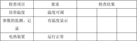 6.2.3.2測驗手法:在完結設備的IQ后,查看培育箱各項操作預備作業安排妥當,按設備的規范操作規程空車運轉,對下表所列項目進行查看,并將查看成果填入下表,接連三次。