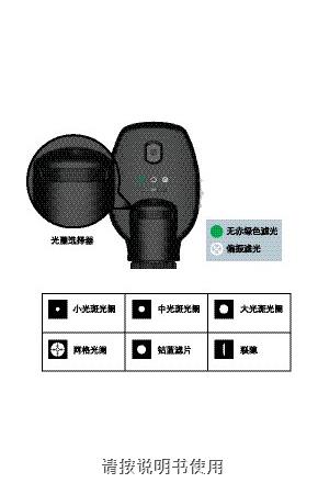 檢眼鏡:六種光斑可選擇:小光斑、中光斑、大光斑、網格片、裂隙片、鈷藍片。配合使用:偏振濾光、無赤,綠色濾光,屈光度范圍:-25~40D,采用軸點光學系統無需擴瞳,無需暗室,并提供25°視角